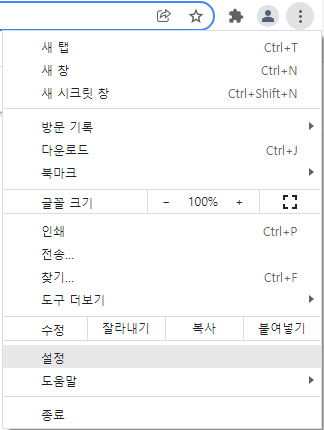 예시를 보기위해 크롬의 설정창을 눌러주세요