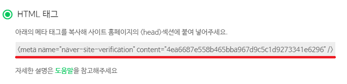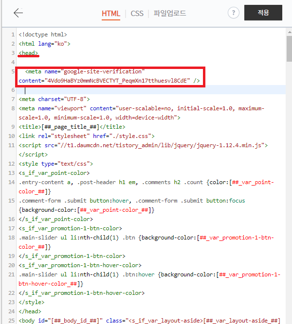3. 이제 아래의 HTML태그를 <head>태그 안에 넣어주어야 합니다.