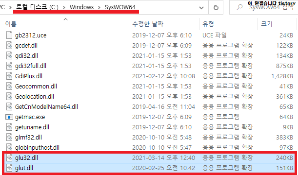 혹시몰라 C드라이브를 뒤적거리다보니 glut32.dll과 glut.dll파일을 찾을 수 있었습니다.