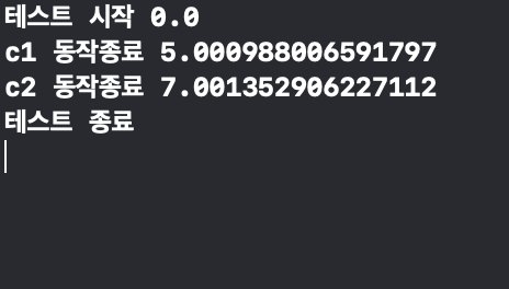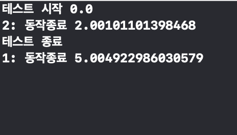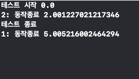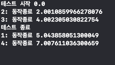 각 큐에 담긴 Task는 n초 만큼 대기 후 종료를 알리는 문자열을 출력합니다