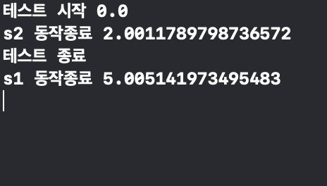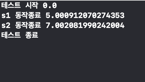 s1큐에 담긴 Task는 약 5초가 소요되었고 s2에 담긴 Task는 약 7초가 소요되었습니다