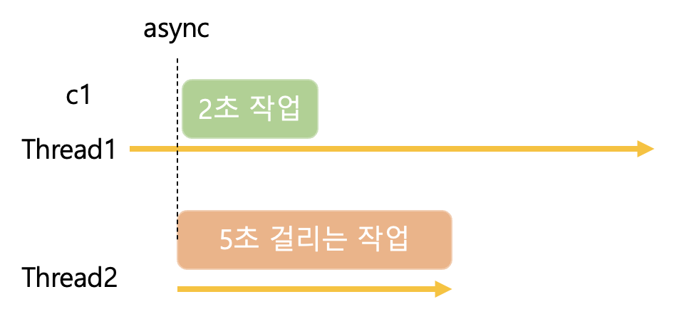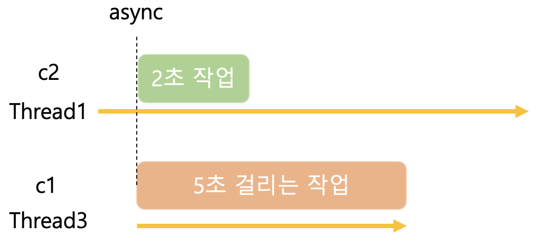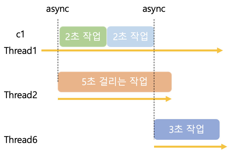 async는 동시에 처리할 수 있도록 다른 현재 쓰레드가 아닌 다른 쓰레드에 Task를 할당해 줍니다