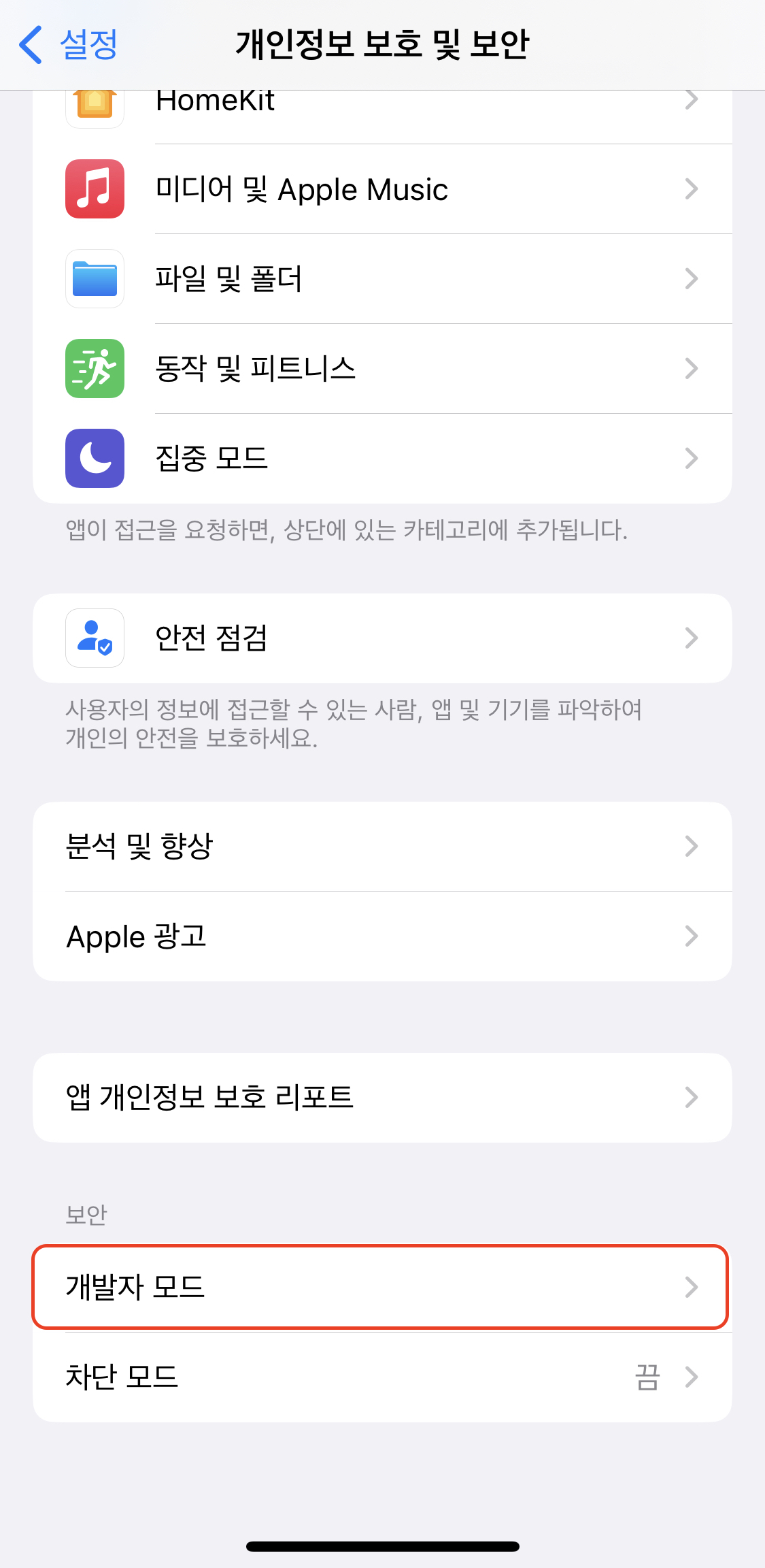 오류의 원인은 iOS16에서 개발자 모드가 새로 생겼기 때문이었습니다