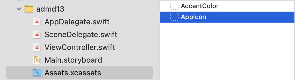프로젝트의 Assets폴더로 들어간 뒤 AppIcon을 클릭해 줍니다
