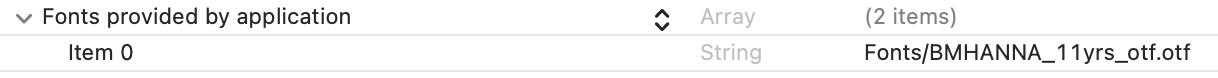 4. 하단에 Fonts provieded by application 삽입