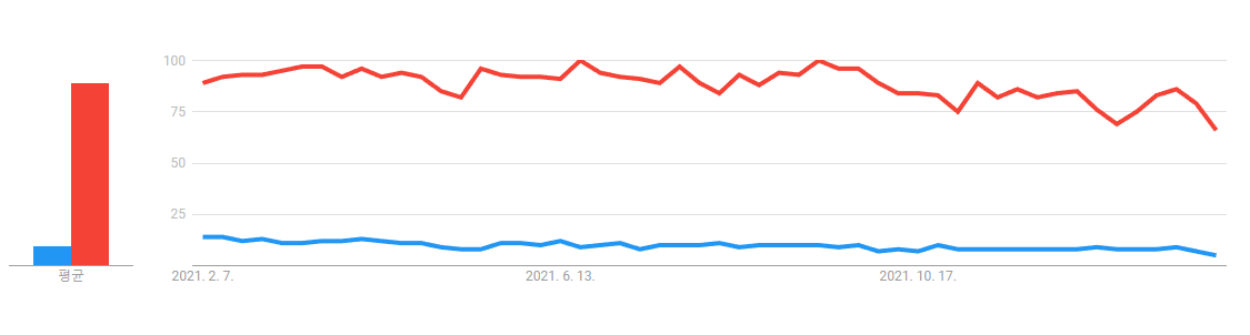 지난 12개월간의 한국 구글 검색량 비교입니다